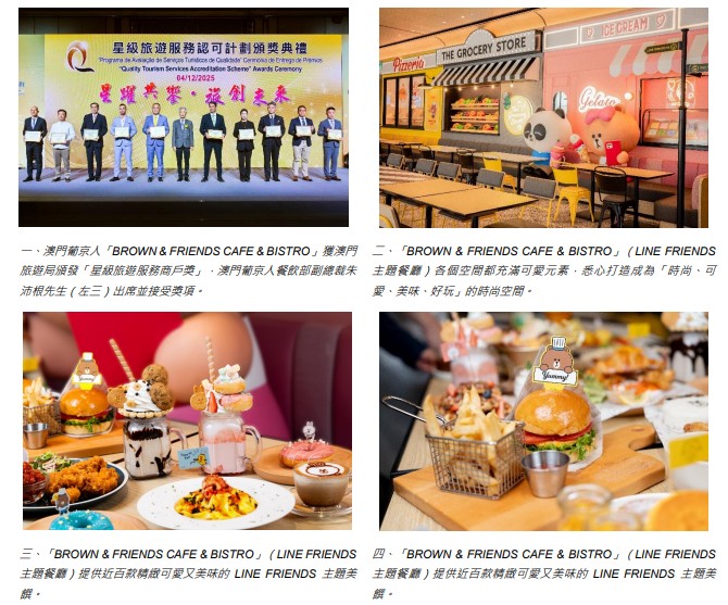 葡京人LINE FRIENDS 主題餐廳 獲旅局頒「星級旅遊服務商戶獎」