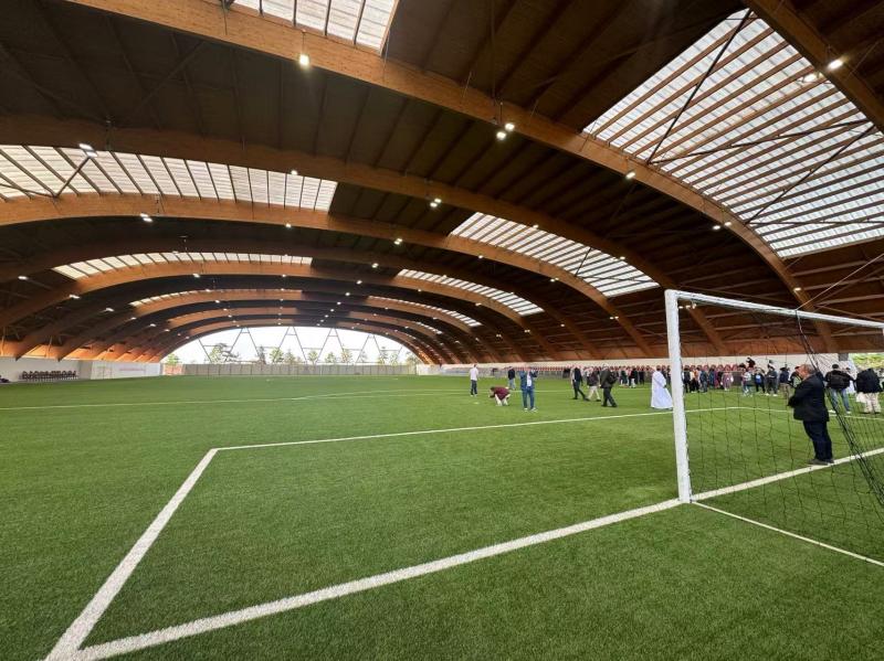 一眾媒體代表參觀摩洛哥足球總會其中室內足球場